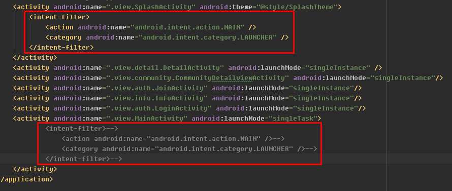 위 코드는 매니페스트에 하나만 있어야한다