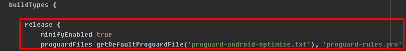 ProGuard를 적용하는 방법은 쉽습니다. build.gradle 파일 에 아래 소스만 넣어주면 땡입니다. buildTypes { release { minifyEnabled true proguardFiles getDefaultProguardFile('proguard-android.txt'), 'pro..