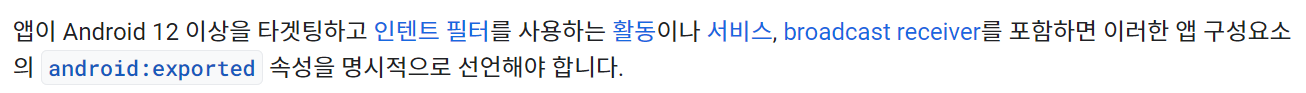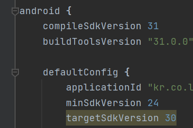 인텔리제이가 targetSdkVersion 30에 노란불을 띄웠길래 버전업이 되었구나 하며 31버전으로 바꾸었다.