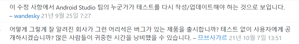 요약하자면, 안드로이드 스튜디오 자체의 이슈라는 것.