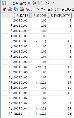 GROUP BY ROLLUP (P_CODE, P_DATE);