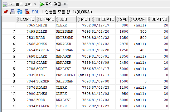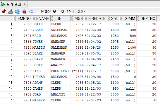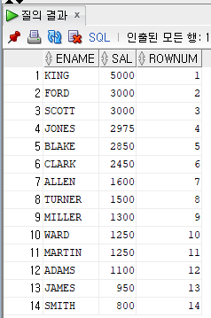 --ROWNUM은 하드디스크에서 가져온 순서대로 번호를 매김