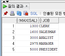SELECT DEPTNO, JOB, ROUND(AVG(SAL), 1) AVG_SAL, COUNT(*) CNT_EMP
