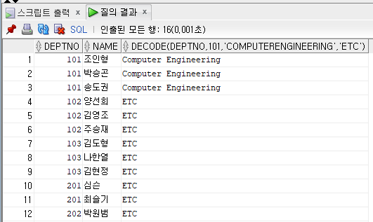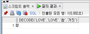 -- DECODE로 구분하기, DECODE는 부등호를 쓸수 없다