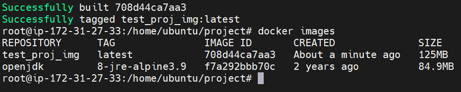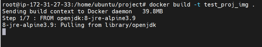 . 은 도커파일의 경로이다. 아까 도커파일 경로로 이동했기 때문에 . (현재경로)로 입력한다.