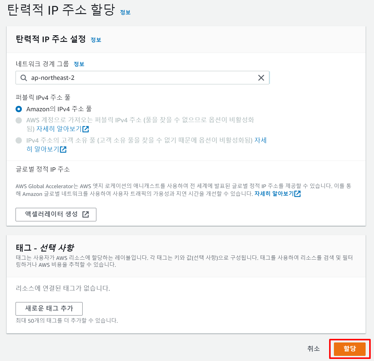 (해당 아이피는 동적 아이피이다. 인스턴스를 중지하고 재실행하면 바뀔 수 있다. 바뀌지 않게 하려면 탄력적 IP를 사용하자.)