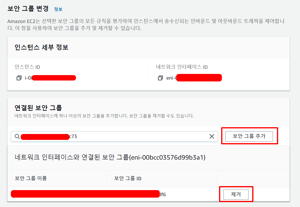기존에 보안 그룹을 만들어 두지 않았다면 아래와 같이
