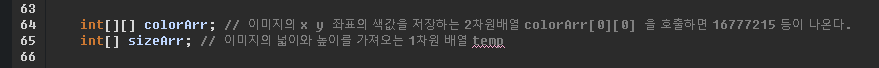 private int[][] colorArr; // 이미지의 x y 좌표의 픽셀 색값을 저장하는 2차원배열