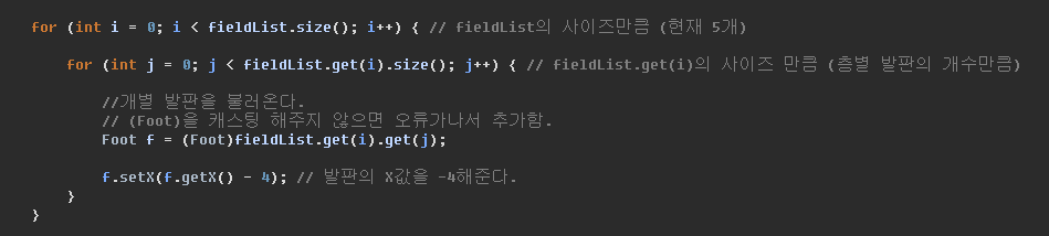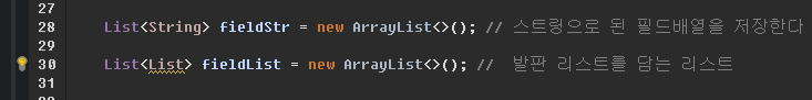 private List<Field> fieldList = new ArrayList<>(); // 발판 리스트