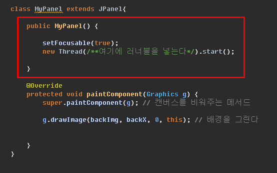 JPanel을 상속받아서 새로운 패널 클래스를 만들 것이다.