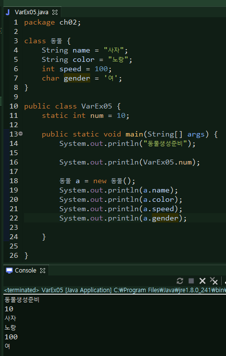 // 한 라인에 두가지 변수를 선언 할 수 있다.
