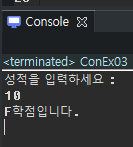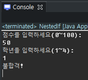 // 점수와 학년을 입력받아 60점 이상이면 합격, 미만이면 불합격을 출력한다. 4학년의 경우 70점 이상이어야 합격이다.
