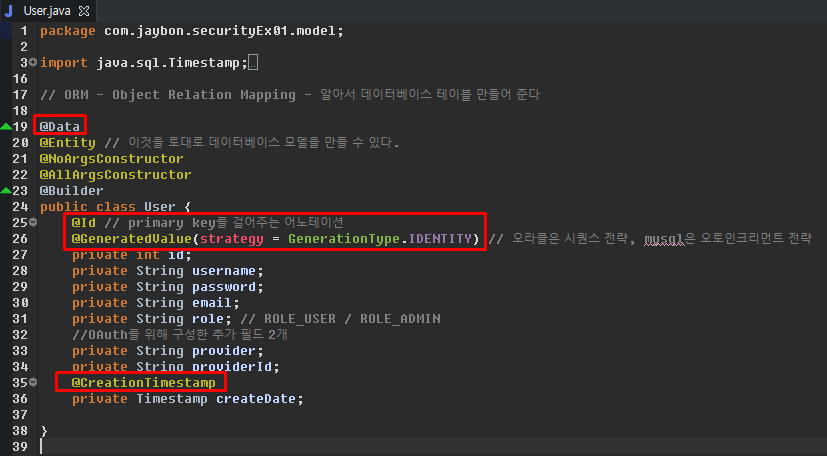 @CreationTimestamp - 타임스탬프 시간을 자동으로 넣어준다(JPA)