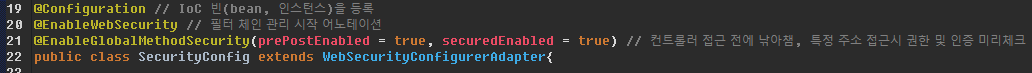 @EnableWebSecurity // 필터체인을 커스텀 한다는 어노테이션