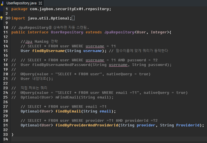 JPA는 네이밍 전략으로 함수를 짤 수 있다는 점 참고 - 인터넷 검색