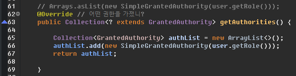 Security-Context (key) 밑에 방대한 값(value)들이 있다 그 중에 Authentication( 인증에 필요한 권한, 유효한 이용자인지 등 모든 필드가 정해져 있다 ) 필드들이 정해져 있다는 것은 만들어서 넣어야 한다는 뜻 Authentication Manager의 도움을 받아서Authentication을 만든다 Authentication의필수 입력 값은 (username, password) Authentication의 구성은 정해진 필드를 따라 만들어야 한다 ( User, UserDetails ) UserDetails ( 유저네임, 패스워드, 권한 )를 만들 때 컴포지션하거나 내 커스텀 유저정보 java 파일에UserDetails을 extends 하면 된다 접근할 때 DI를 사용하면 된다