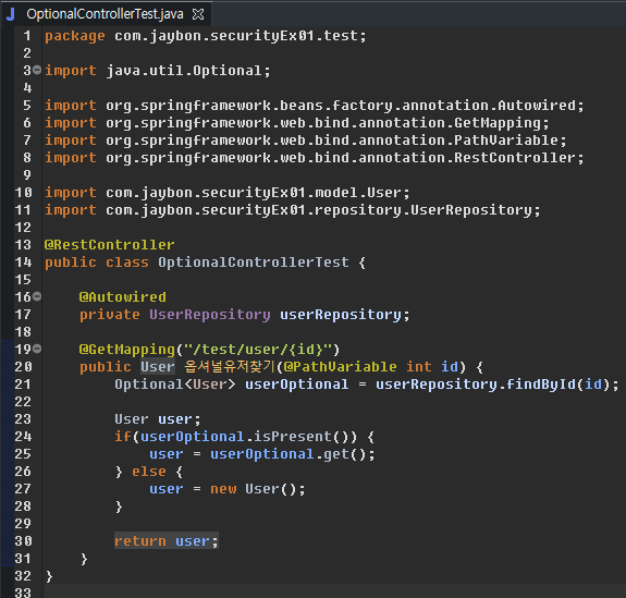 참고사항 : com.jaybon.securityEx01 아래에 만들어야 컴포넌트 스캔이 된다