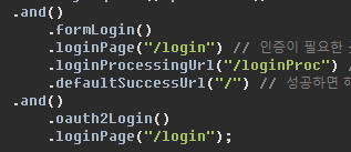 .loginPage("/login") // 인증이 필요한 곳에 /login 으로 리다이렉트