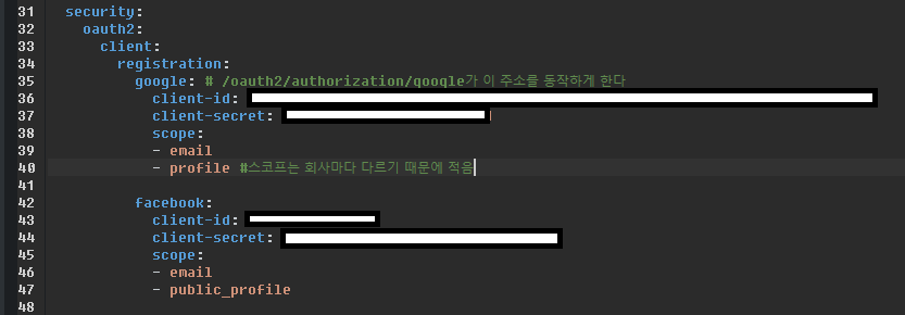 서버 -------> 구글 페이스북 (스코프요청)