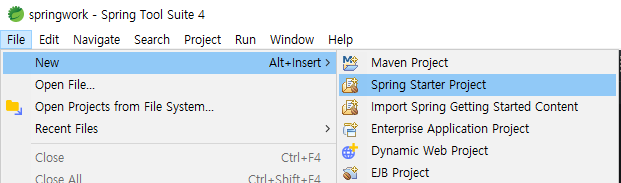 새 스프링부트 프로젝트 생성