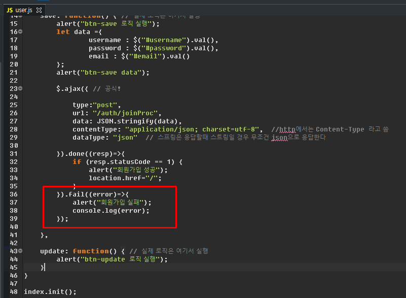 로그인만! Ajax 쓰지말자 (회원가입은 써도됨)
