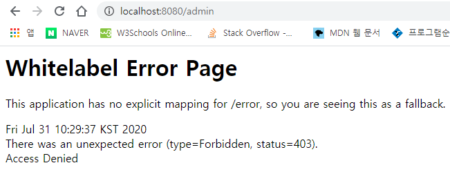 다른페이지로 이동하면 권한이 없어서 페이지가 뜨지 않는다(403)
