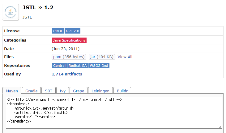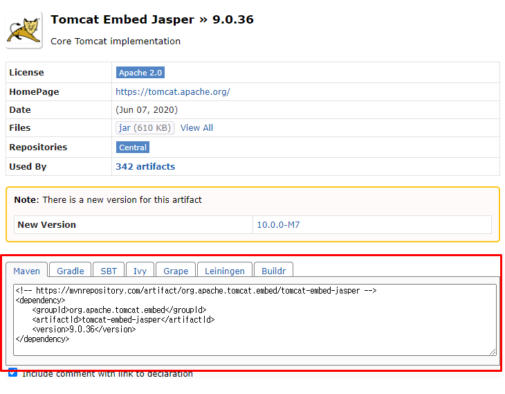 추가해주고 서버끄고 메이븐리파지토리 업데이트 무조건!