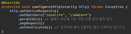 성공하면 해당주소로 이동 defaultSuccessUrl (Ajax와 같이 쓰지말 것 : 응답이 두번되기 때문에 꼬임)
