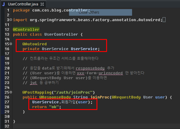 컨트롤러에 회원가입 라우팅 추가