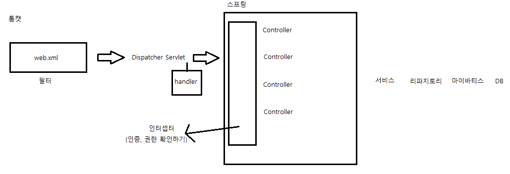 필터 - 디스패쳐 - 인터셉터 - 컨트롤러