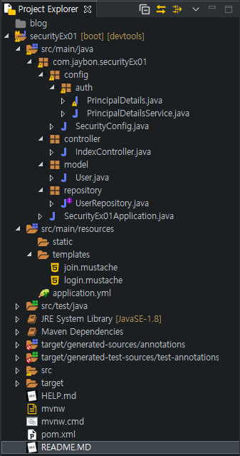 com.jaybon.securityEx01 아래에 만들어야 컴포넌트 스캔이 된다