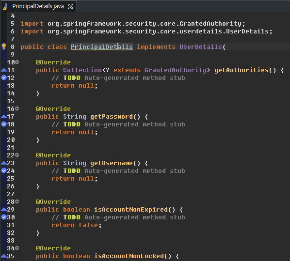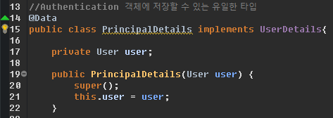 내 커스텀 유저정보 java 파일에 UserDetails을 extends 하면 된다