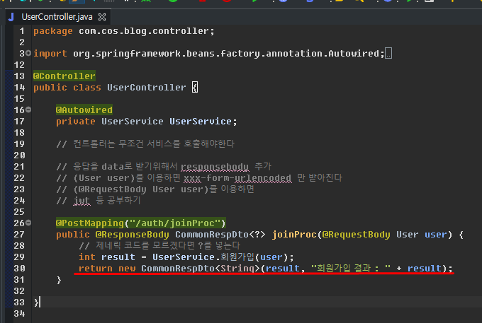컨트롤러에 회원가입 프로세스 라우팅 추가