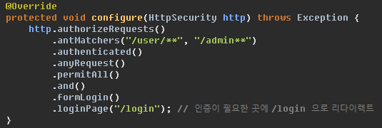 (시큐리티 컨피그를 안만들었기 때문)