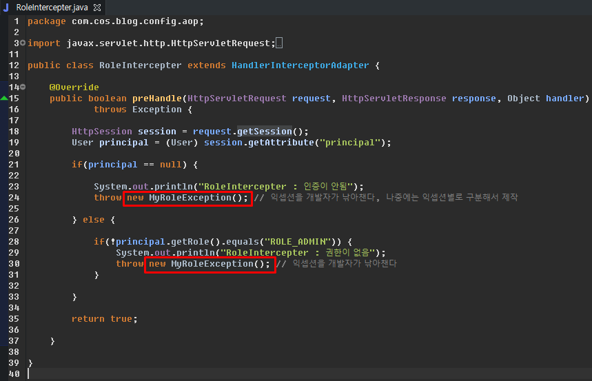 인터셉터에서 막힌 것