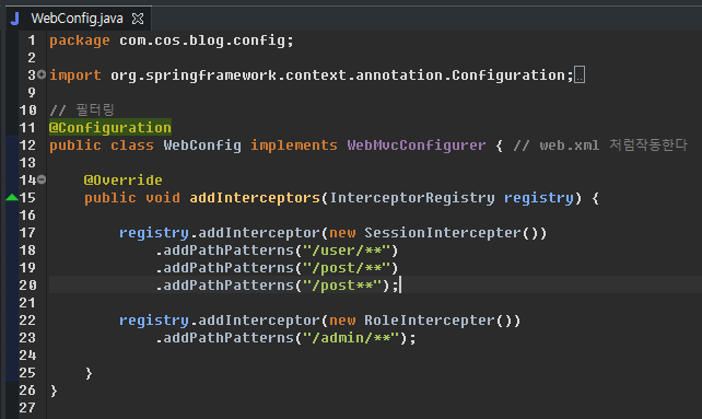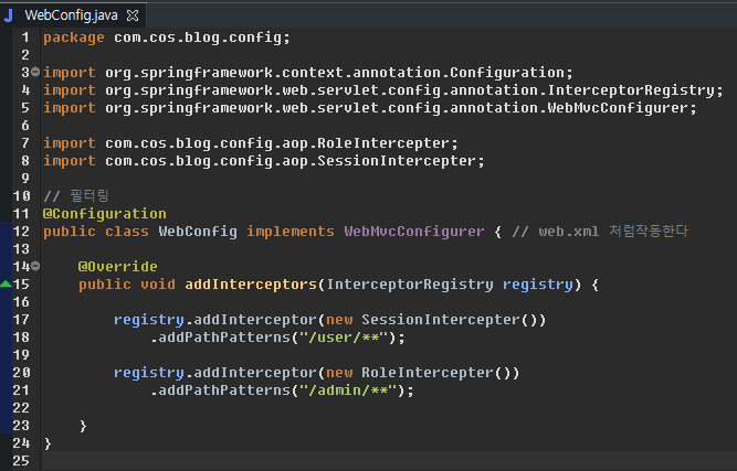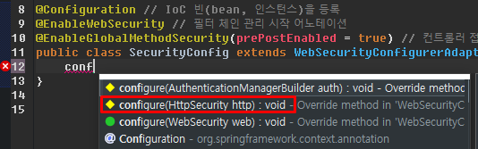 전체 필터를 관리할 수 있는 클래스 (@EnableWebSecurity)