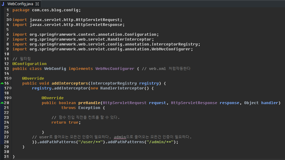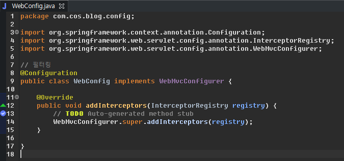필터를 낚아채려면 오버라이딩 또는 extends로 재정의