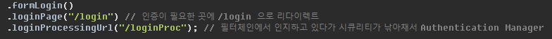 loginProc는 컨트롤러에서 낚아채는 것이 아니라 loginProcessingUrl에서 낚아채서 수행