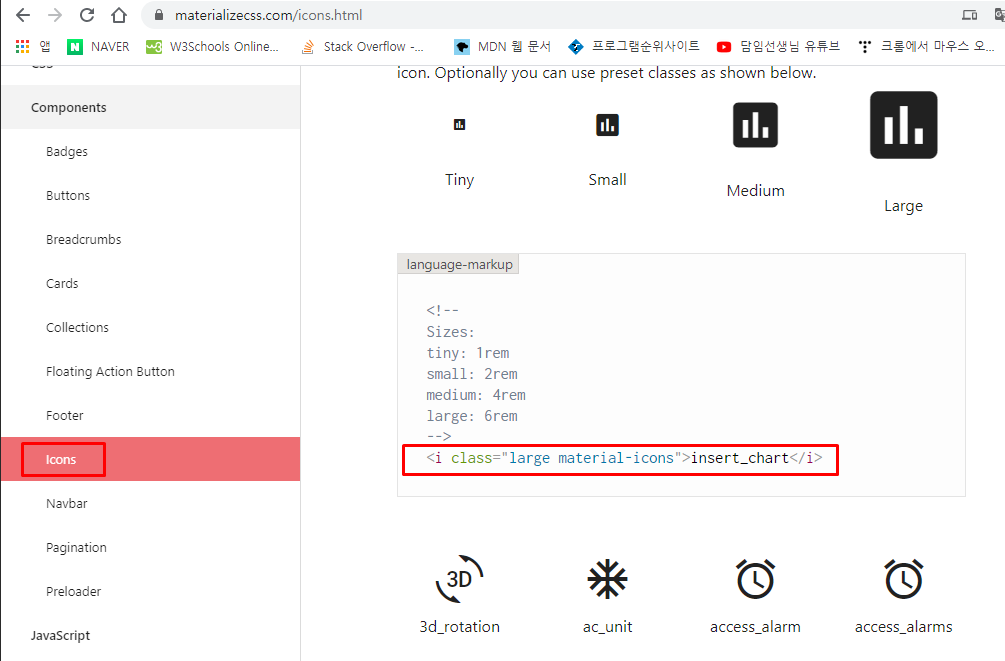 materializecss / w3schools 아이콘 사용